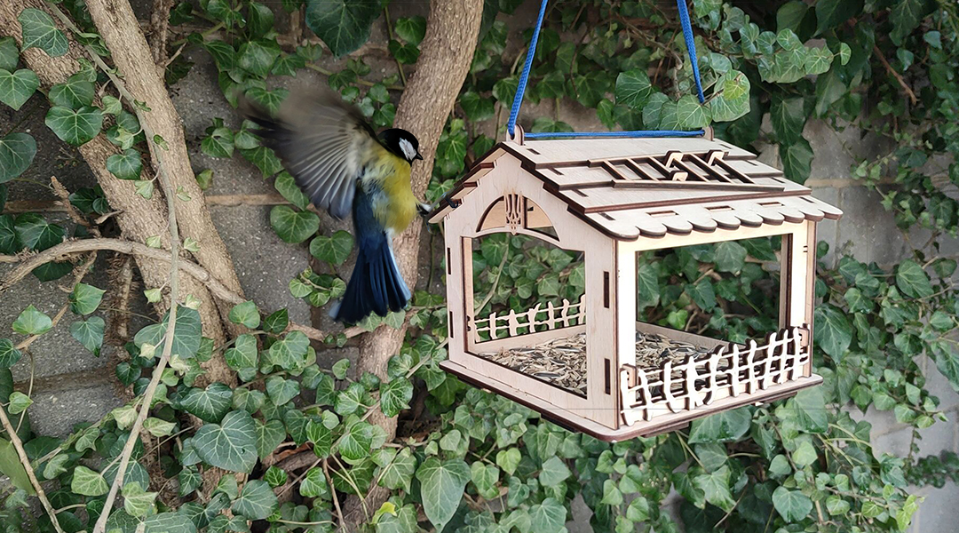 Це втілення вашого натхнення у функціональний декор, виготовлений із високоякісної фанери за допомогою високоточного лазерного різання. Завдяки точності до 0,1 мм, кожна деталь годівнички ідеально підігнана, що гарантує міцність конструкції та легкість збірки. Такий виріб не просто допомагає птахам, а стає унікальним елементом вашого саду, де кожна лінія відображає вашу індивідуальність та любов до природи.
